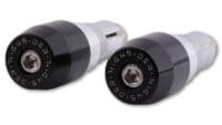 Chrome plated or black handlebar ends, suitable for handlebars with an inner diameter of 12 to 22mm – i.e. for most 7/8 inch and 1 inch aluminum or steel handlebars. All our handlebar end mirrors (hanging mirrors) with a diameter of 1 inch (25.4 mm) can be attached to the Bar End Weights.