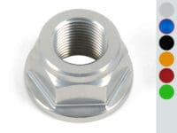 Swingarm or rear wheel axle nut, depends on the motorcycle CNC machined Anodized aluminium Ergal Care to respect tightening torque values
